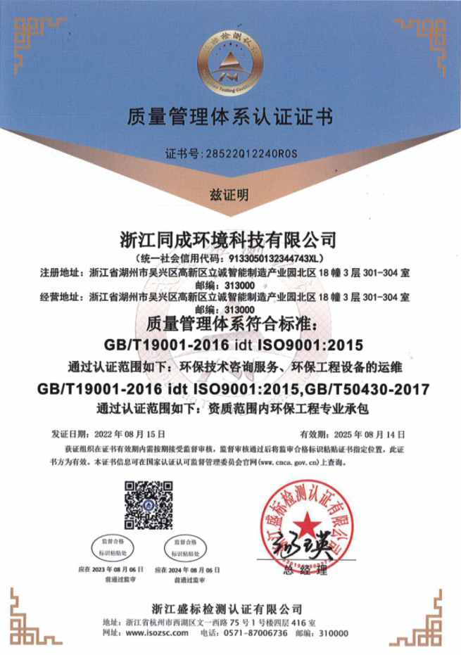 公司成立于2014年,現位于湖州市吳興區樹莊路88號中小微企業智能產業園一期18幢,是一家集環境咨詢、環境監測、環境工程設計和總承包及運維服務、環保設備加工制造與技術研發、投資運營與一體的綜合性環境服務公司。公司已通過國家高新技術企業認定、國家級科技型中小企業認定和湖州市科技企業研究開發中心認定,擁有高中級工程師、國家注冊環評工程師、建造師、三廢處理高級工等一系列專業技術人才近百人,擁有環境影響評價、環境監理、清潔生產審核、工程設計及總承包、機電安裝、運營、檢測等全產業鏈的各級資質,擁有專業研發團隊并取得二十余項發明專利。